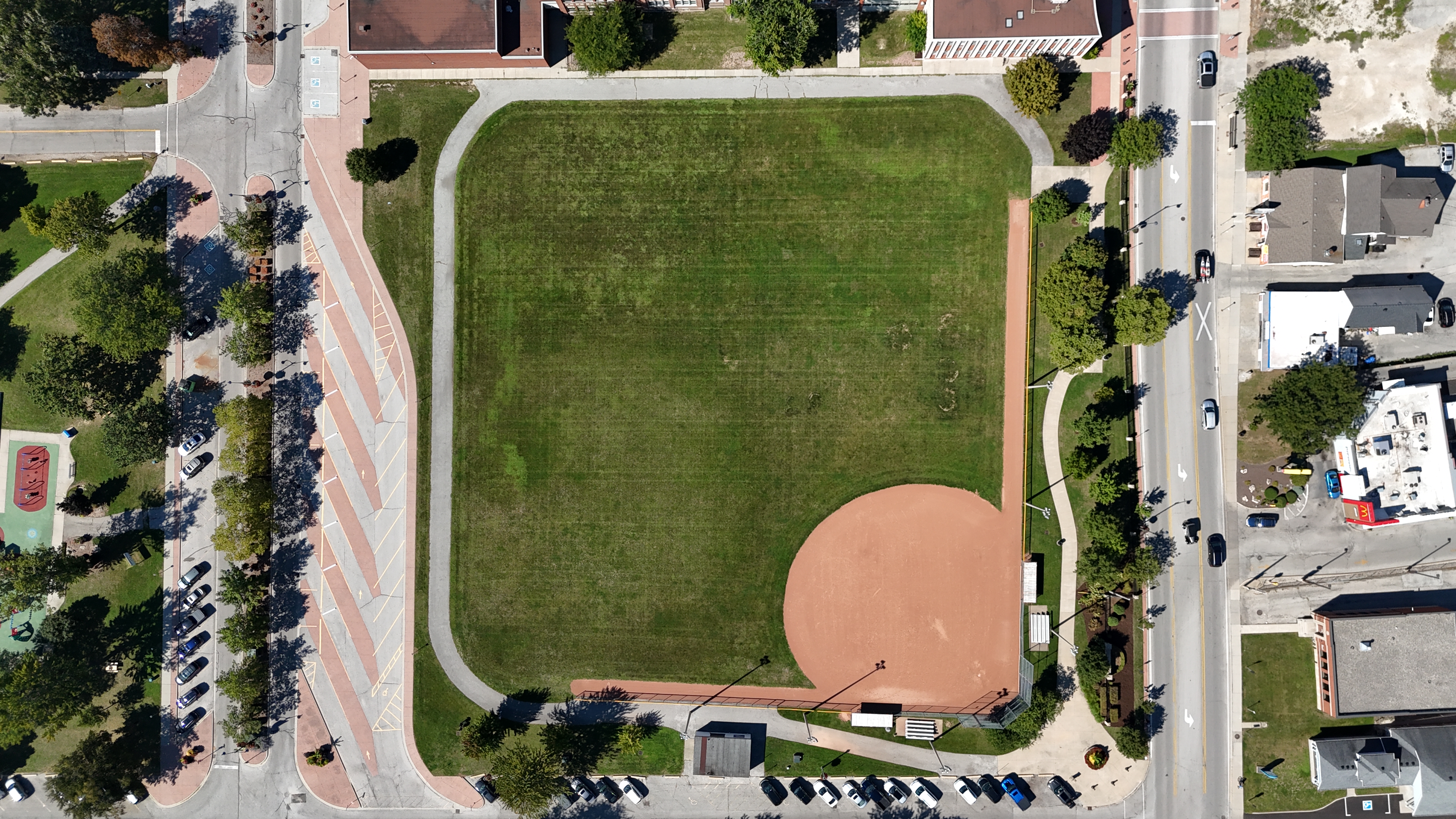 The image below shows the current park conditions. The final image is the proposed approved Master Plan which will be implemented as funding permits.
