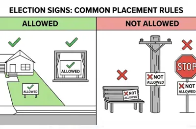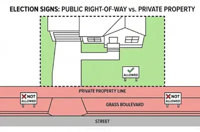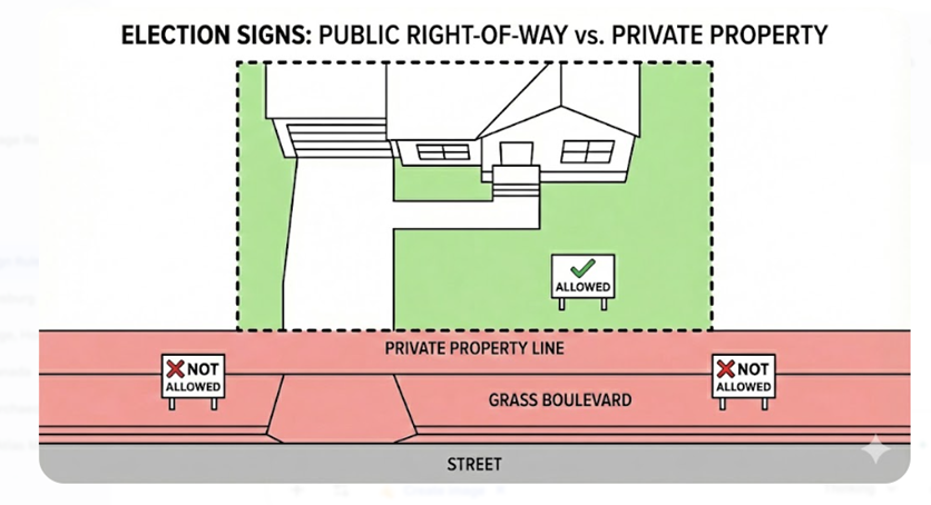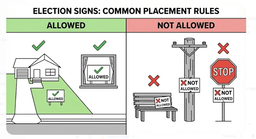 - Start Date: Signs may NOT be displayed until a candidate has registered with the Office of the Clerk following May 1, 2026